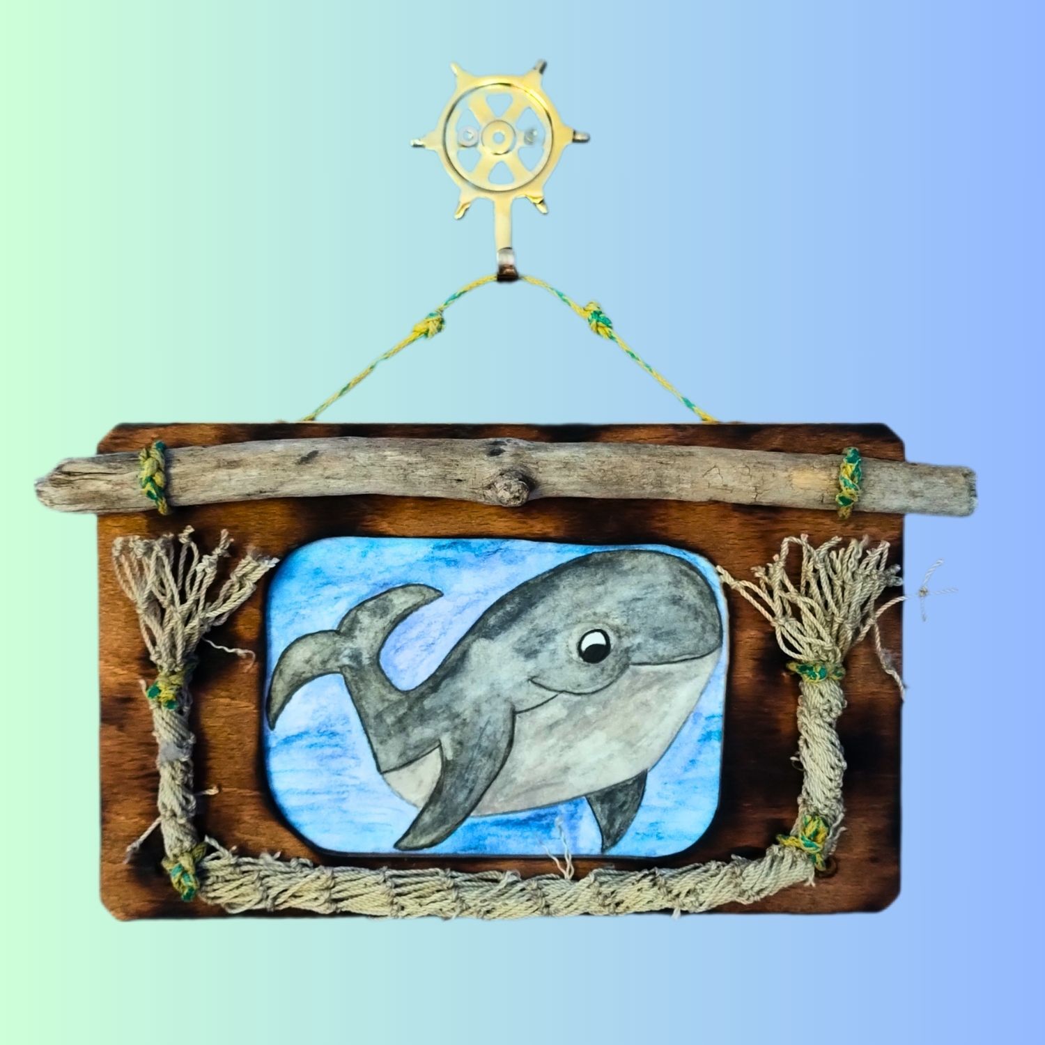 Dieses Unikat aus Treibholz und mit einem aus der Ostsee geborgenen Geisternetz ist mit viel Liebe handgemacht. Der Wal ist auf Watercolor Paper mit Aquarell Holzstiften gemalt. Der Rahmen besteht aus selbst gesammeltem Treibholz sowie Buchensperrholz. Der Aufhänger aus einem ebenfalls aus der Ostsee geborgenen Geisternetz gibt dem Kunstwerk den letzten Schliff. (Artikel wird ohne Haken geliefert)
